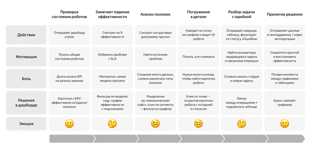 Когда я вижу рост количества поломок, я хочу понять причину и модель робота, чтобы быстро сообщить в техподдержку и устранить проблему.