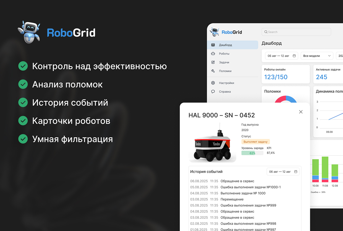 Разрботка дашборда для анализа эффективности роботов сервиса «RoboGrid». При разработке необходимо учесть: