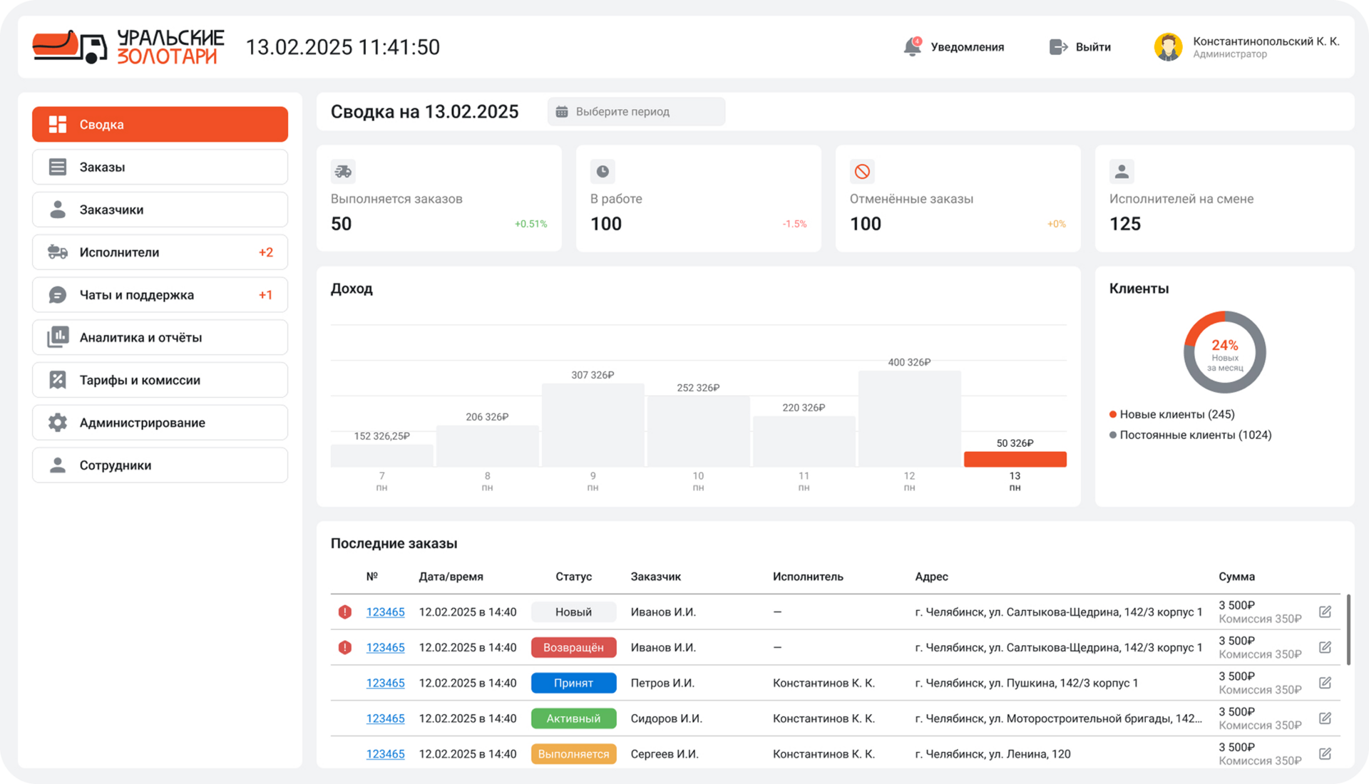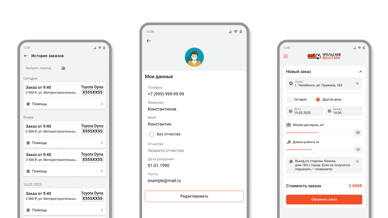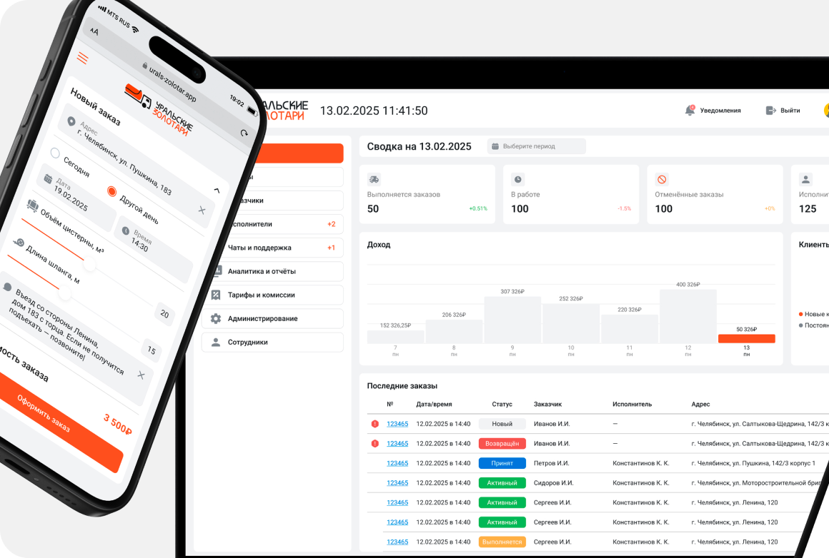 Разработать веб-приложение, которое объединяет три типа пользователей: клиентов, исполнителей и администраторов. Сервис позволяет заказывать услуги ассенизаторов, управлять заказами, отслеживать статус, общаться с поддержкой и вести финансовые расчёты — в одном интерфейсе.